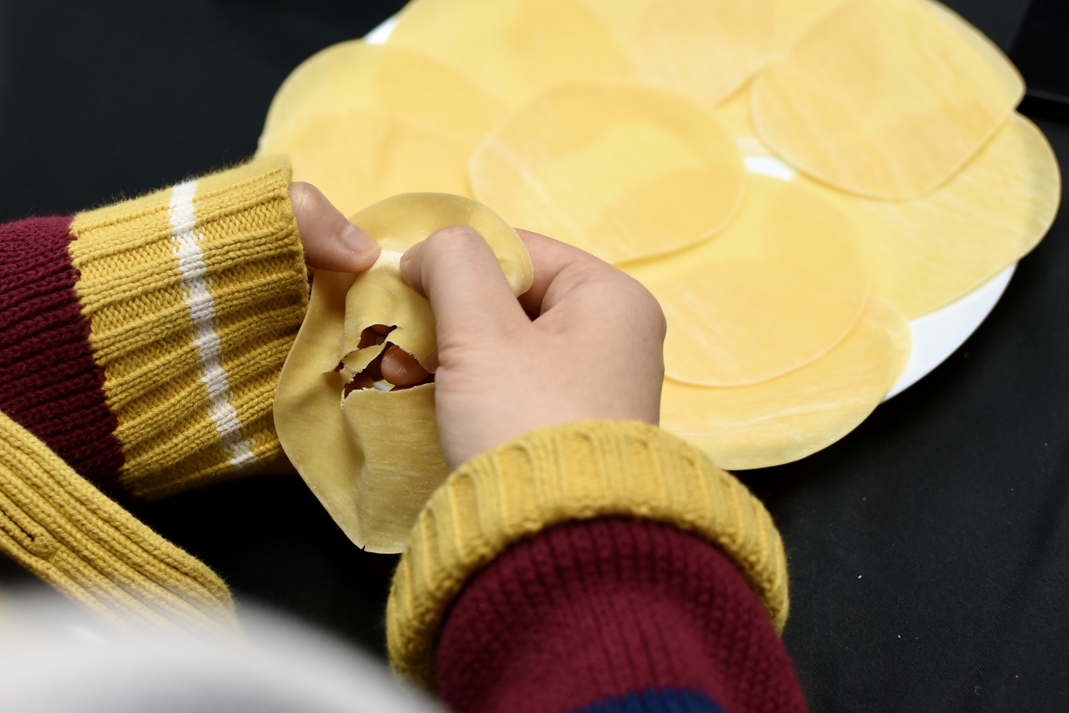 Performed on the Winter Solstice of 2022, 'Kneading Breaths' prompts reflection on the transformation of food into cultural symbols, and ordinary days into celebrated festivals, exploring how art, via community-based practices, can challenge and reshape traditional celebrations. Through collective mourning, chanting, and sharing of food, the performance illuminates the intricate interconnections between language, culture, and territory. Recognizing the emergence of a pantheistic, post-secular spirituality in contemporary art, this performance seeks to bridge diasporic identities. It welcomes audience members to assume the role of myth-makers, intertwining personal memory, familial stories, and cultural history with an collective-speculated future through ritual and foodmaking.